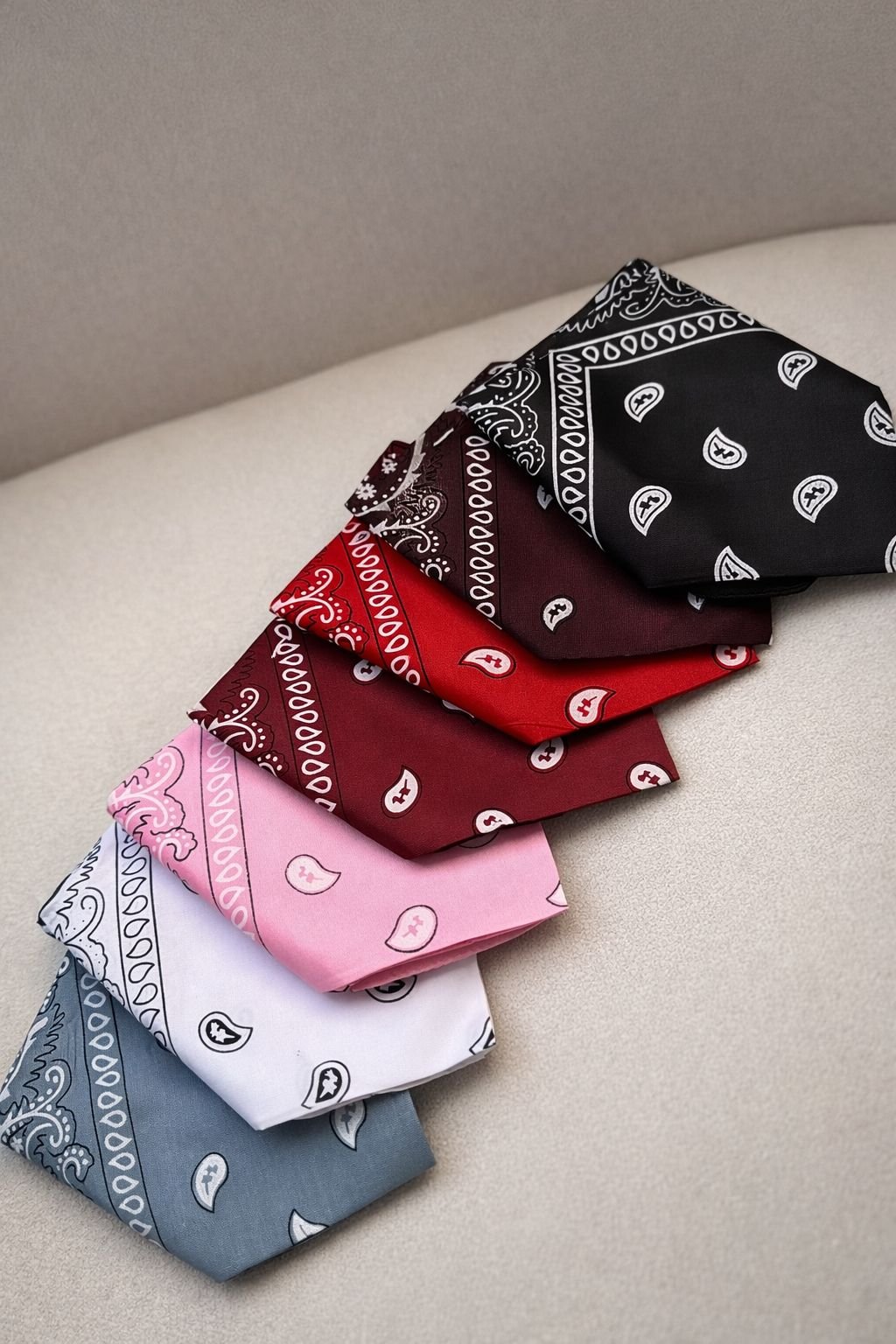 - Bandanas são lenços quadrados versáteis, usados no pescoço, cabeça ou como acessório de moda.