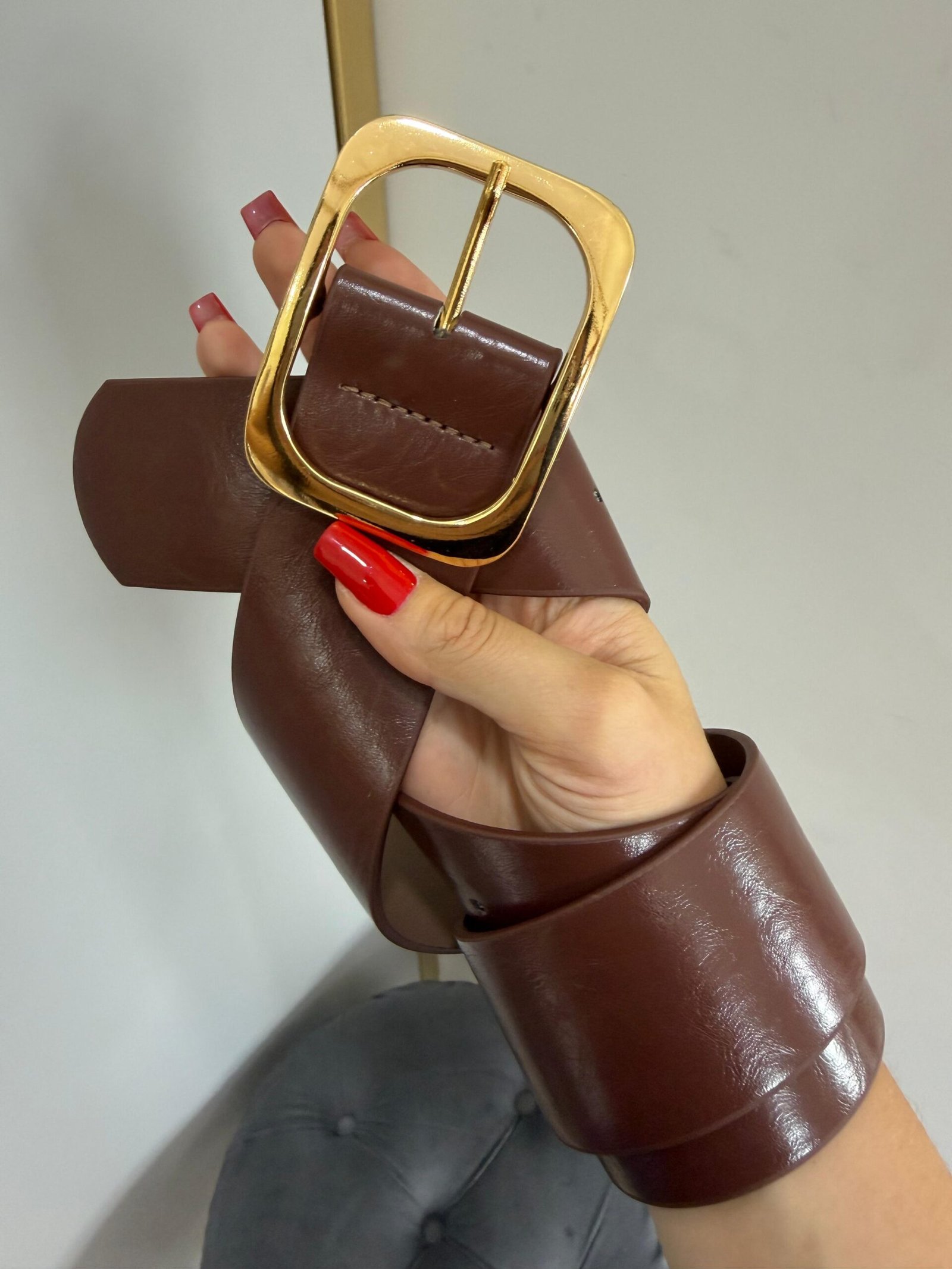 Cinto Marrom Fivela Quadrada Dourada