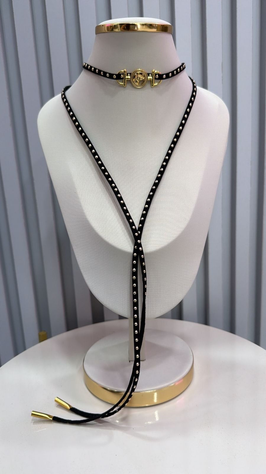 Colar Choker Gravatinha Country Preto Melada Cavalo Dourado