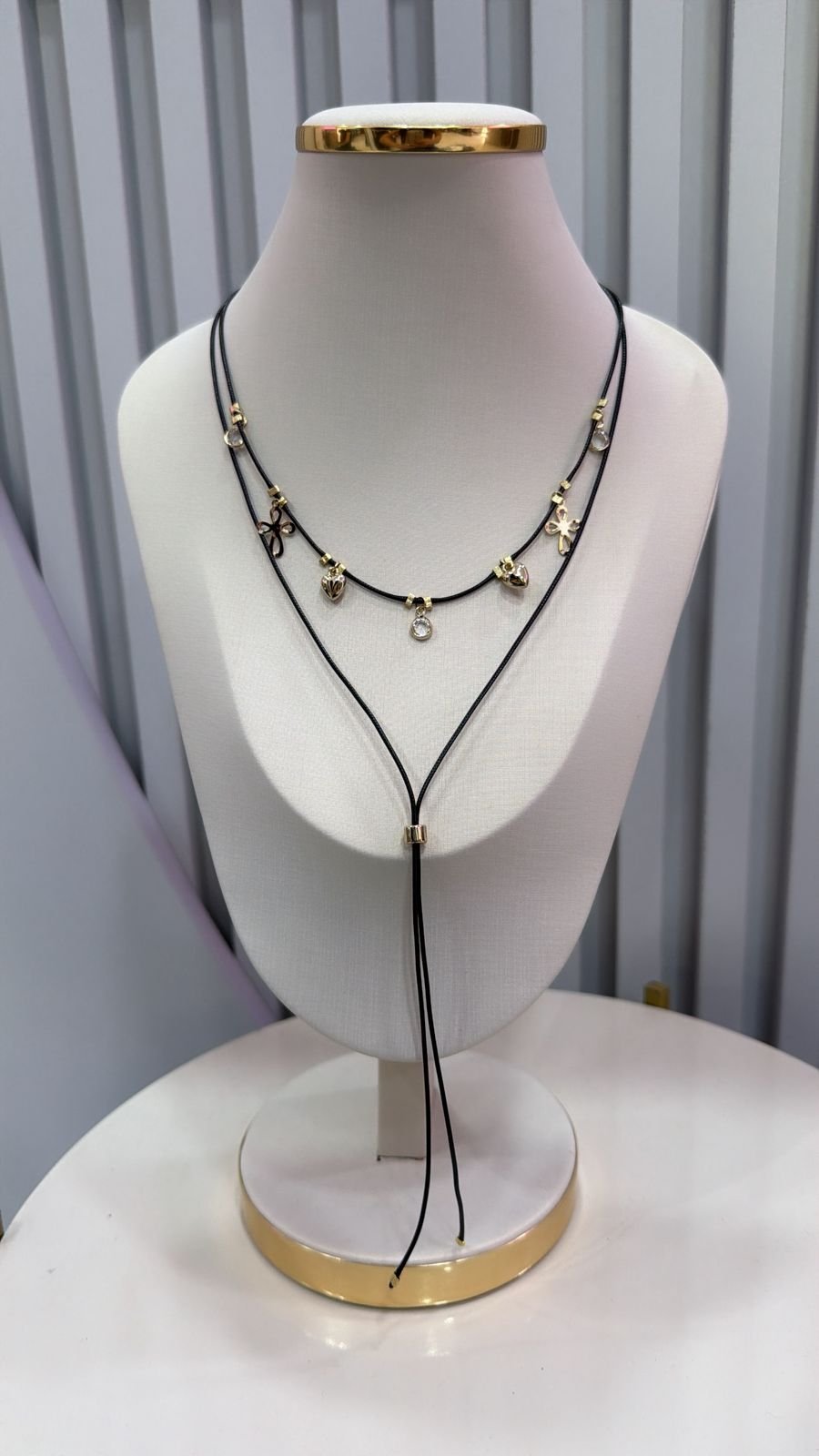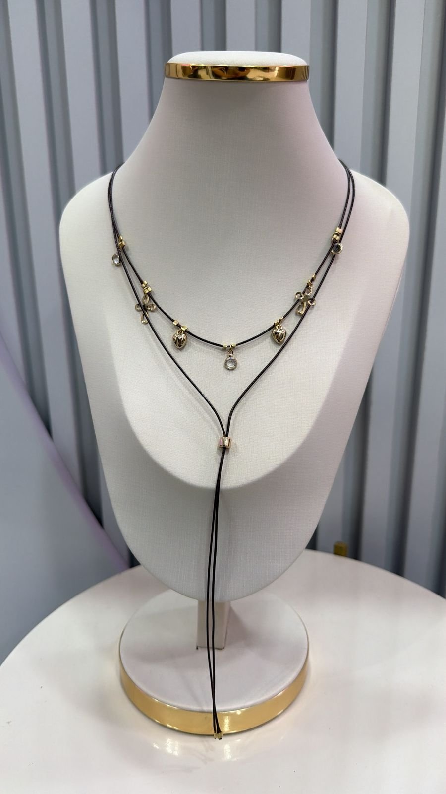 Colar Gravatinha Courino Pingentes